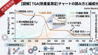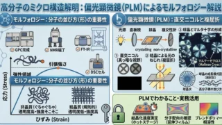 高分子化学【高分子化学】熱の出入りで正体を見抜く!DSC(示差走査熱量計)の原理とグラフの読み方 高分子分析の定番「DSC(示差走査熱量計)」を徹底解説!ガラス転移点(Tg)や融点(Tm)の見方、吸熱・発熱の原理を初心者向けに図解しました。プラスチックの耐熱性や結晶化度を評価するための必須知識を分かりやすくまとめました。 2026.04.21高分子化学