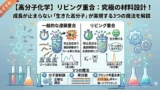 前回の記事で解説した「リビング重合」を使うことで、この構造を自在に作ることができます(Aを食べ尽くした後に、Bを投入する手法でしたね!)。Aの性質とBの性質が混ざり合わず、両方の長所をハッキリと併せ持つ高機能な素材(熱可塑性エラストマーなど)になります。