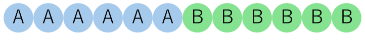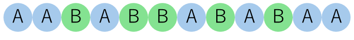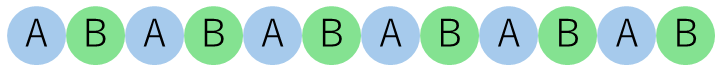 交互A-B-A-B-A-B1個ずつ規則正しく並ぶ。