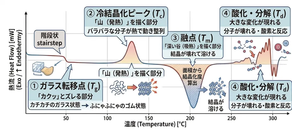 DSC曲線の読み方:4つの重要ポイント