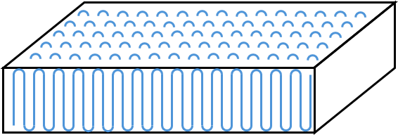 この折りたたみ鎖がズラーッと横に連なっていくと、目には見えないほど極小「薄い板状の結晶」が出来上がります。この板状の結晶構造のことをラメラ(Lamellae)と呼びます。