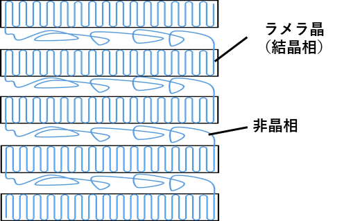 また、図のようなラメラと非晶の積層構造のことを(積層)ラメラ構造と呼びます。