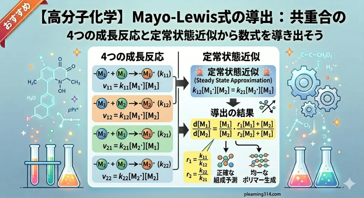 【高分子化学】Mayo-Lewis式(共重合組成式)の導出を世界一わかりやすく解説!