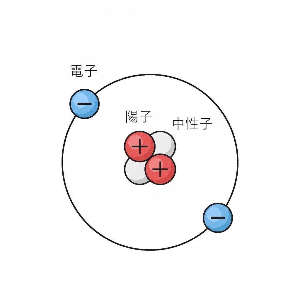 水素原子は陽子を1つだけ持っているので,質量数は1になります.また,ヘリウム原子は陽子2つと中性子2つを持っているので質量数は4になります.このことから,ヘリウム原子の重さは水素原子のおよそ4倍だと分かります.
