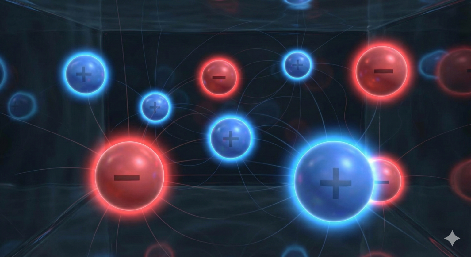 以上,電荷とイオンでした.粒子は電子を受け取って陽イオンになったり,電子を失って陰イオンになったりします.それは,電子や陽子が電荷と呼ばれる電気を帯びているからです.